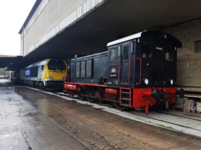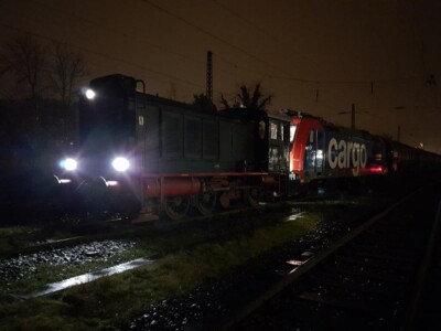 Am 20.12.2019 kam dann die Belastungsprobe. Wir mussten einen etwa 2000 Tonnen schweren beladenen Kesselwagenzug wieder in den mit Fahrdraht überspannten-DB-Teil umrangieren. Aufgrund des Dauerregens an diesem Tag, und der schleppenden Beladung dauerte die Aktion einen halben Tag zumal aus Witterungsgründen immer nur 6 volle Wagen gleichzeitig umgesetzt werden konnten. Unsere 236 406-5 hat diese Rangierleistungen mit Bravour erledigt und fast fühlte man sich in alte DB-Zeiten versetzt.