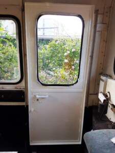 An der Köf 322 607-3 erhielt eine in die Jahre gekommene Führerstandstür von innen nach dem Entrosten und Grundieren einen zweiten Deckanstrich (siehe Foto).