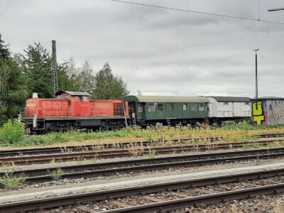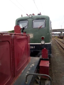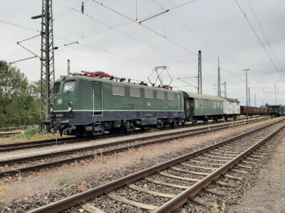 Auf „großer“ Fahrt waren indes zwei unserer Lokführer und holten mit dem „Darmstädter Knallfrosch 141 228-7“ zwei der vier in Revision befindlichen Wagen frisch untersucht aus Rastatt ab. Ein Dank auch an die Kollegen der DME aus Darmstadt-Kranichstein, dass wir sehr unkompliziert die E-Lok dafür anmieten konnten.