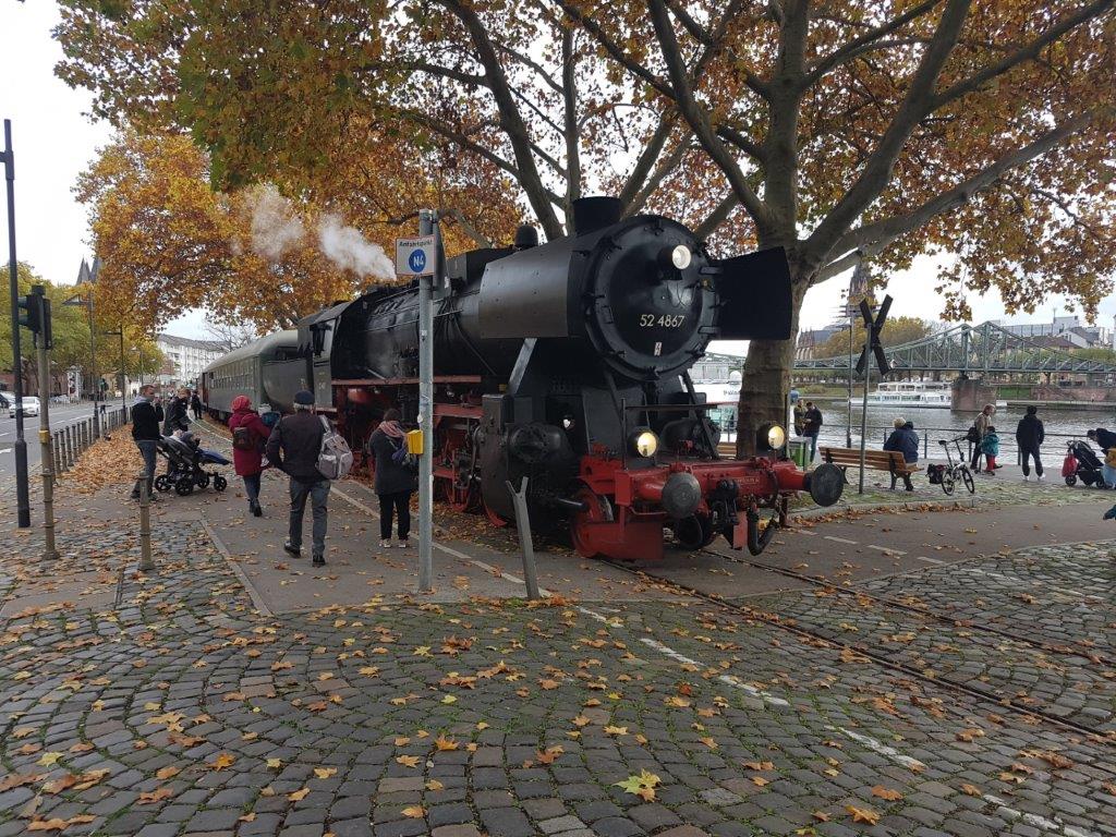Gestern sind wir auf der Hafenbahn Frankfurt mit unserem Halloween-Express gefahren. Die Fahrten waren bei wunderbarem Spätherbstwetter ein tolles Erlebnis. Es kamen unsere Dampflok 52 4867 und unsere Köf 322 607-3 im Sandwichbetrieb zum Einsatz. Für unsere Köf war es eine der letzten Fahrten, da Ihre Untersuchungsfrist in Kürze abläuft und aufgrund der Corona-Pandemie derzeit keine Mittel für eine neue Hauptuntersuchung zur Verfügung stehen. Die Lok zeigte sich aber trotz ihrer 86 Einsatzjahren immer noch top fit und fuhr sogar zufällig genau 86 km quer durch Frankfurt.