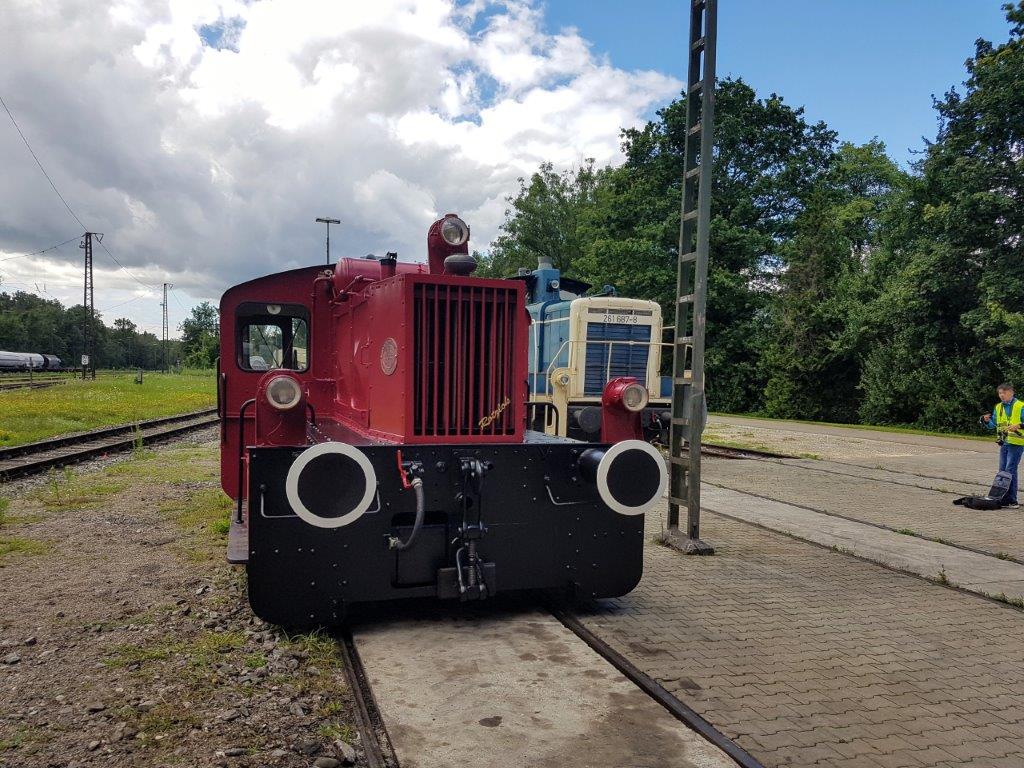 Die Köf hat eine HU im Werk Neuoffingen erhalten und ist äußerlich etwas hergerichtet worden. Kleinere Mängel werden wir in Eigenarbeit auf dem Gelände erledigen – so z.B. die noch fehlende Beschriftung. Der nicht ganz einfache Rücktransport nach Frankfurt steht nun an. Wegen der langsamen Geschwindigkeit auch beim „Mitrollen“ kann dieser nicht über die Schiene erfolgen. Die Aufnahmen entstanden am 6.8.2021.