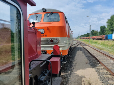 Berits am Samstag den 04. Juni trafen die Gastfahrzeuge auf dem Gelände der Historischen Eisenbahn Frankfurt in Frankfurt Ost ein. Nach einigen Rangierarbeiten ging es nun in zwei Zügen über die Hafenbahn Richtung Frankfurt Hoechst und dann nach Königstein.