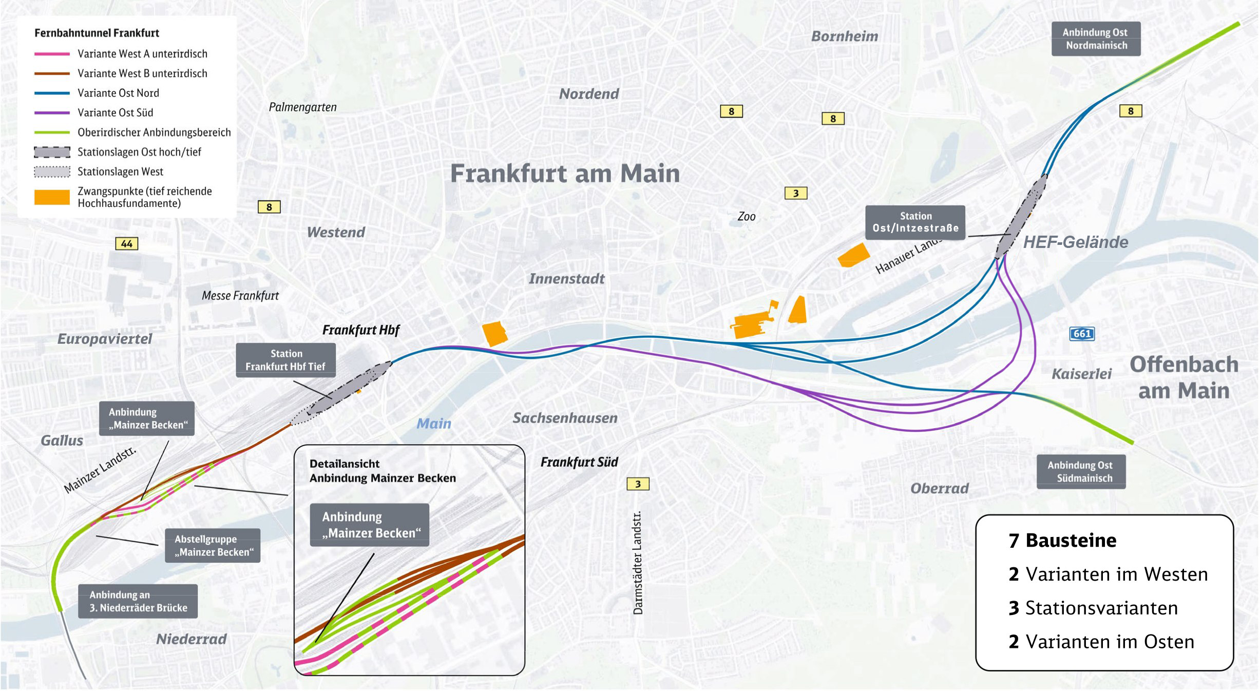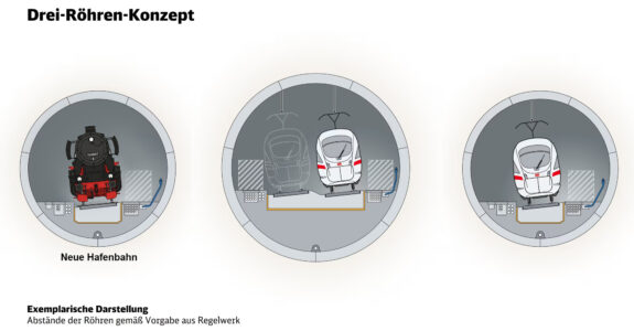 Zusammen mit dem Projektteam werden wir im Rahmen der nächsten Sitzung des Dialogforums am 27. April genauer auf die Streckenführung eingehen. Die konkrete Planung sieht eine dritte Röhre für unsere Sonderfahrten vor. Hierdurch werden die derzeit umständlichen Rangierfahrten zum Ost-Güterbahnhof vermieden. Unser traditionelle Abfahrt in Frankfurt Süd Gleis 9 wird sich in den neuen Tiefbahnhof Ost/Intzestraße verlagern. Des Weiteren werden unsere Pendelfahrten entlang des Mainufers nun komplett unterirdisch im neuen „Hafenbahntunnel“ vom Hbf-Tief zum Tiefbahnhof-Ost/Intzestraße führen. Hierdurch werden die derzeit auftretenden Lärm-, und Dampfemissionen an der Mainuferpromenade vermieden, sowie wertvoller Baugrund unter den alten Gleisanlagen am Mainufer frei.