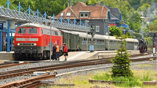 Zum 44. Mal lebt zwischen Frankfurt-Höchst und Königstein im Taunus eine längst vergangene Eisenbahnepoche wieder auf: Immer zu Pfingsten veranstaltet die Historische Eisenbahn Frankfurt e.V. Sonderfahrten mit ihren historischen Fahrzeugen auf der sonst nur von den modernen Triebwagen befahrenen Strecke in den Taunus. So pendeln wir auch in diesem Jahr mit dem Sonderzug zwischen Frankfurt-Höchst, Kelkheim und Königstein. Geplant ist der Einsatz vereinseigenen Dampflok 52 4867 sowie von einer Großdiesellok der Baureihe 218 der MEZ. Es wird wieder im Ein-Zug-Betrieb gefahren. Somit ergibt sich ein 2-Stunden-Takt. In Königstein gibt es voraussichtlich wieder Führerstandsmitfahrten mit der vereinseigenen Kö. Unser Mitropa Wagen steht als "Stand-Cafe" in Königstein. Auf dem Bahnhofsfest direkt am Königsteiner Bahnhof wird für die Verpflegung bestens gesorgt! Info- und Verkaufsstände rund um die Eisenbahn laden ebenso zum verweilen ein.